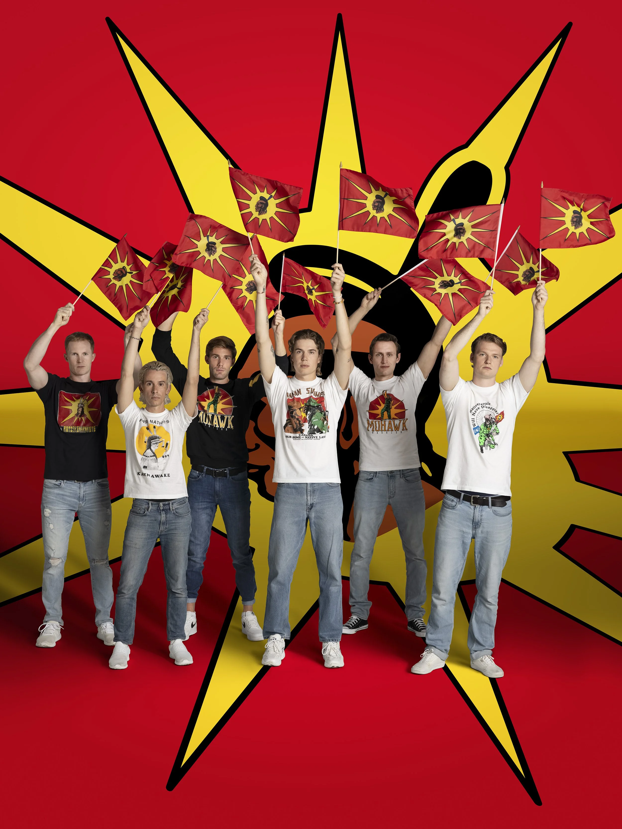 When Rick gave me these t-shirts, immediately, I knew, felt, embodied = that I was going to make a work to pay homage to Rick. This lovely man who has supported so many Vancouver artists and arts organizations. This lovely man, who has been so generous to so many. I sat with the t-shirts and hung them in the sun, as they were stored away for 20 years. As I watched the t-shirt’s move in the wind, I remembered when Rick and Paul returned from OKA, and over the years Rick forever the handsome blonde would wear his Mohawk sweatshirt or T-shirt! As I watched the t-shirts shift and transform in the wind, the image of this new work arrived.