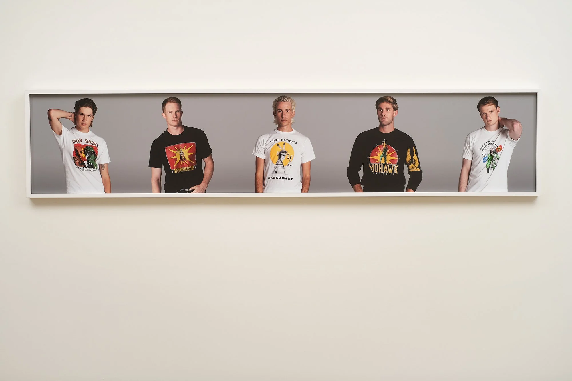 These highly charged “political” t-shirts, worn by non-indigenous men – such a beautiful image. In the age of pretindians and non-indigenous folx afraid to wear anything indigenous – these works open a conversation. My conversations included: